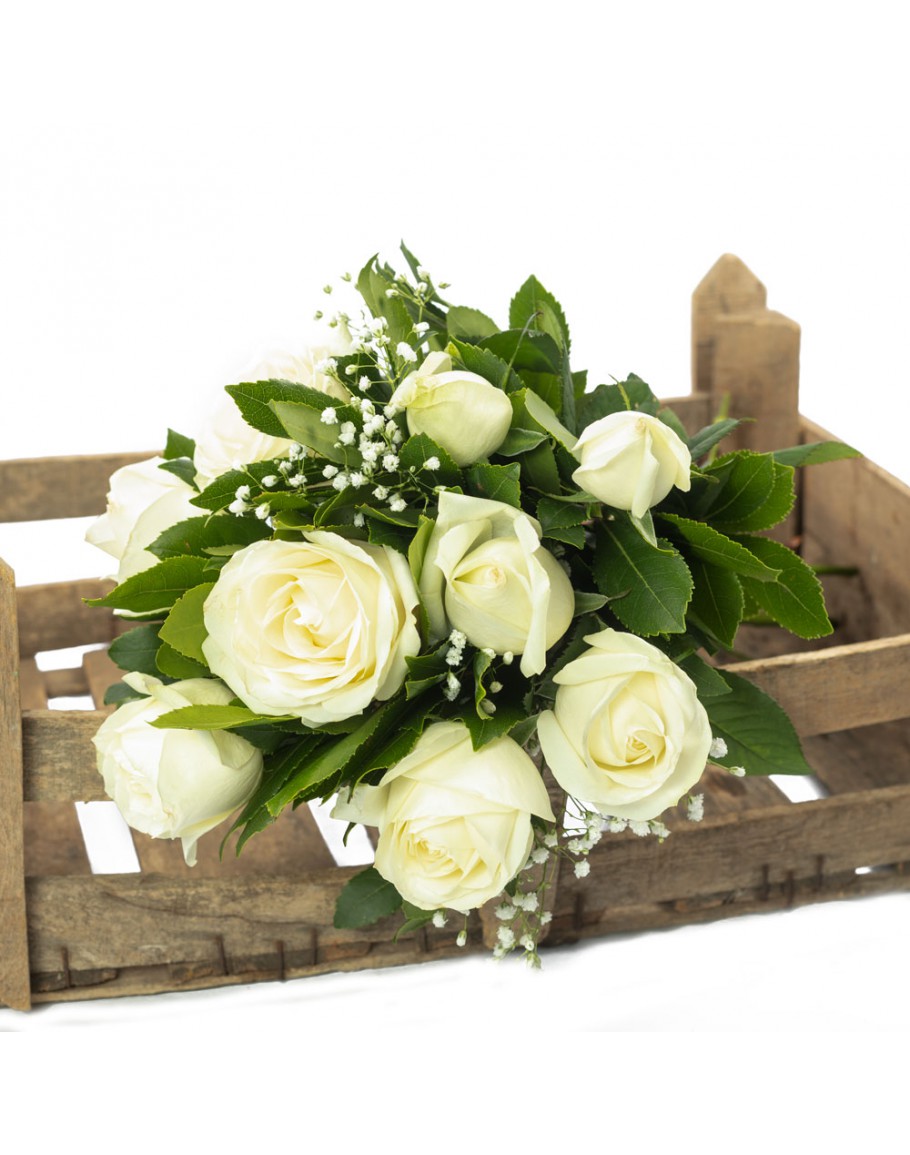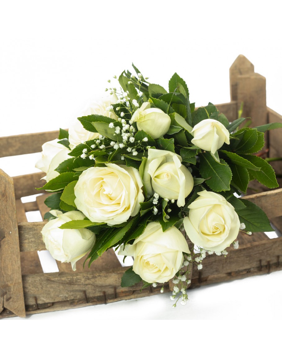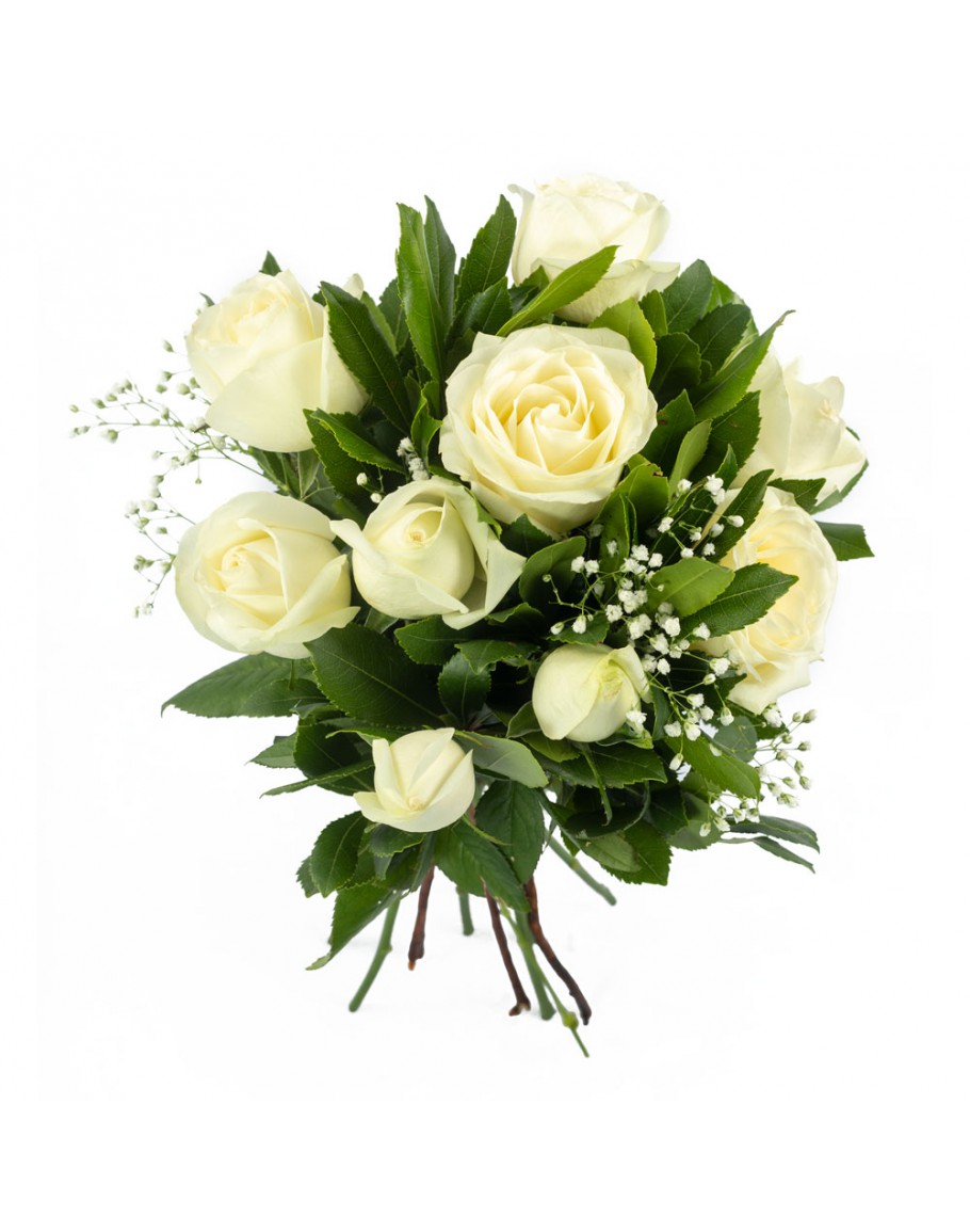 Μπουκέτο 9 λευκά τριαντάφυλλα