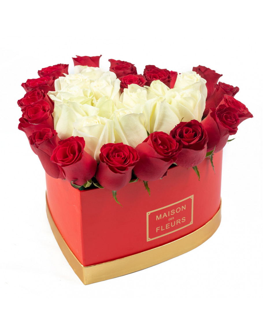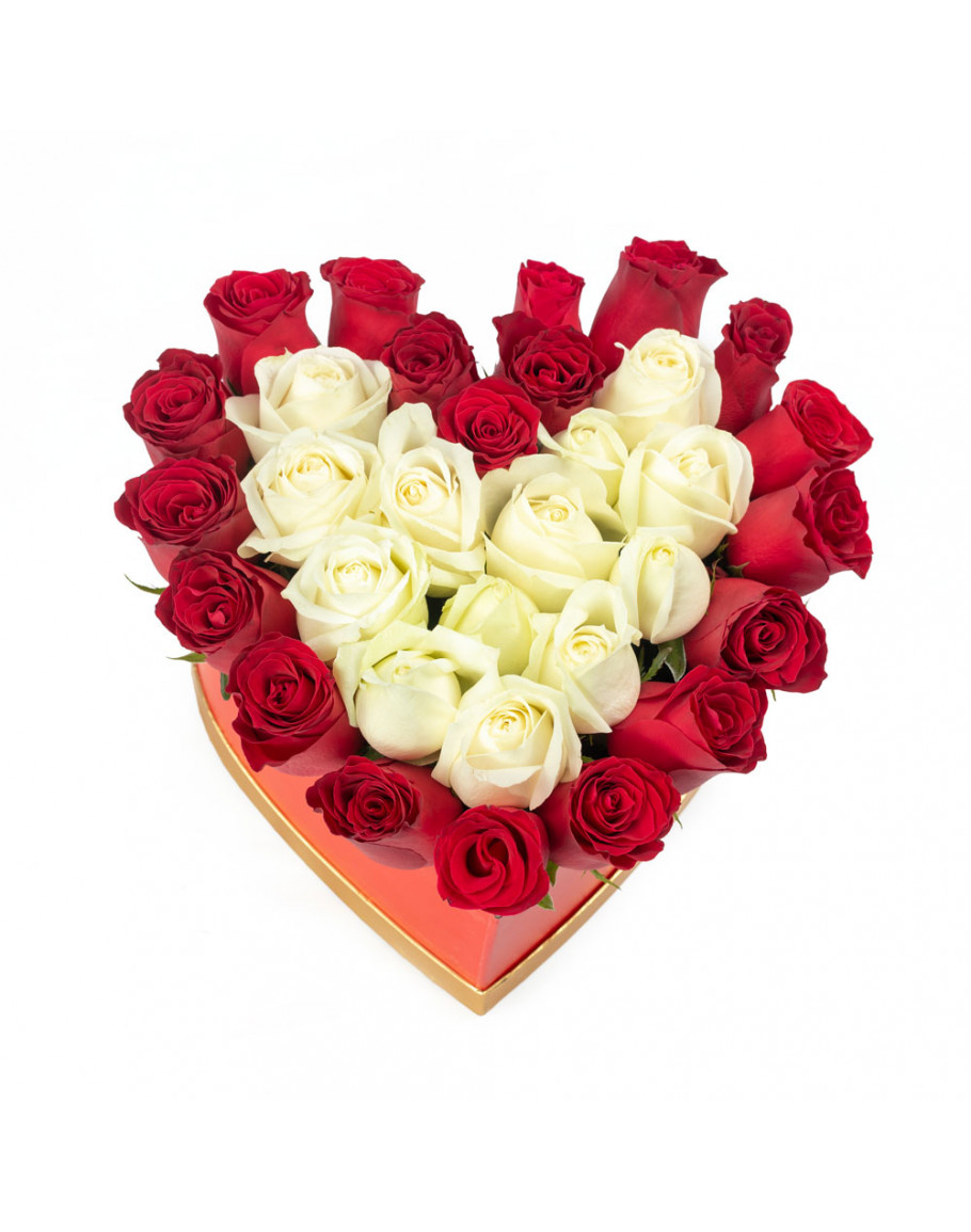 Σύνθεση λουλουδιών σε κουτί καρδιά